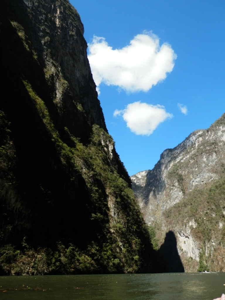 A free day for the group and I decided to accompany Robin, James, Cynthia and Sam on the Sumidero Canyon activity. It was an hour and half to the Canyon which was interesting in itself as we drove through the clouds! Strangely the cruise of the river was in hot weather as we dropped to sea level, vastly different to yesterday’s cold weather and the overcast conditions back in San Cristóbal.