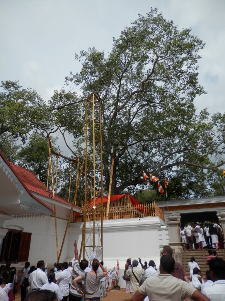 The enlightment tree of the last BuddhaBuddhists all over Sri Lanka come to this place to mediate and make offerings. On this Saturday there were a large number of locals attending to provide gifts to the monks, the numbers apparently were greater due to upcoming year 12 exams with families and students wanting to ensure they are spiritually centred before their tests.
