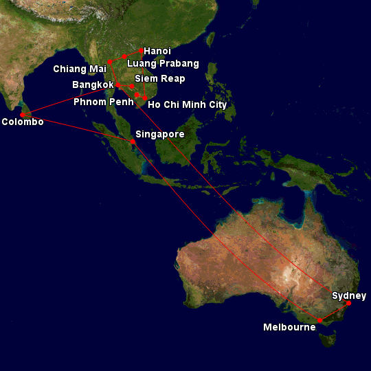 The amazing 2016 South East Asia trip to Thailand, Laos, Vietnam, Cambodia and Sri Lanka seems both like yesterday and a long time ago. It’s sometimes good to think back and right now I’ve been thinking about the flights and distance I’ve travelled the world over my world trips and thought I’d pull together the stats.