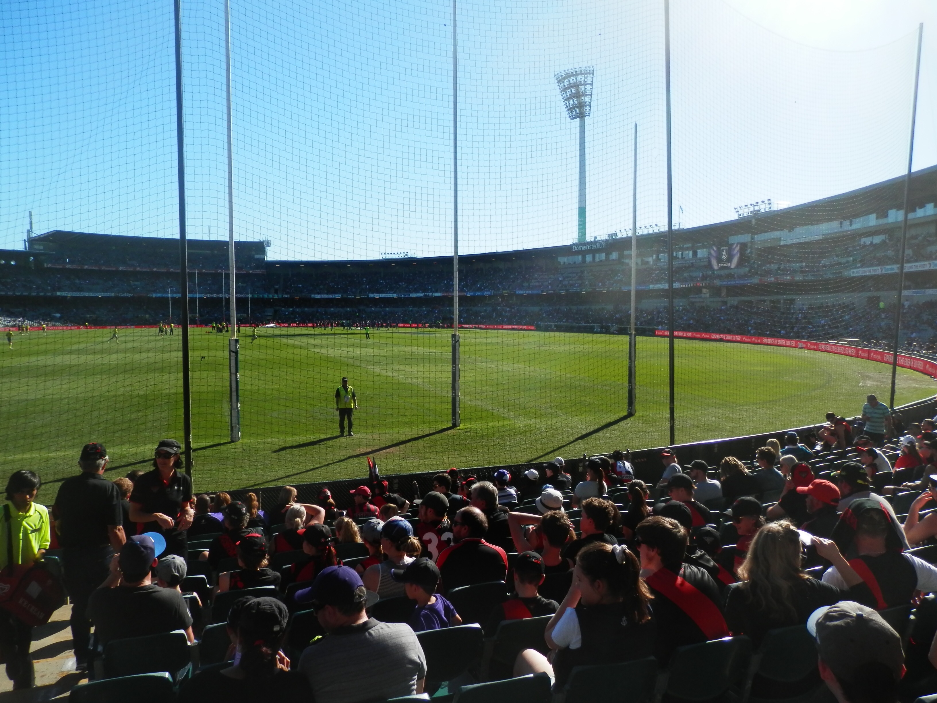 We were sitting at the city end behind the goals and the Essendon Cheer Squad. Still a few Fremantle supporters around but majority Essendon. As we entered the ground about 60 minutes before the start we walked down to the other end to watch the Essendon players do some early practise.