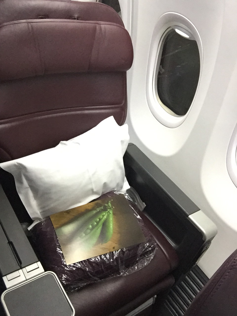 Qantas B737-800 Business Class SeatAs a Boeing 737-800 this is a single aisle plane. I had selected seat 2C as I wanted direct aisle access for this 6 hour overnight flight with the hope 2A seatmate wouldn’t get up too often (he only did three times, twice at beginning and once at the end). There are three rows of 4 seats in business class (2 x2). The seats had a pillow and blanket on them I stored the blanket but kept the pillow for the overnight flight.