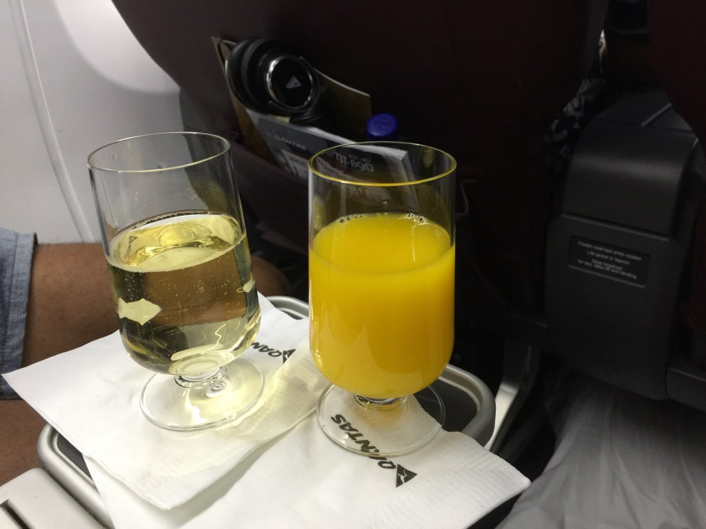 Pre departure drinksWe were offered juice, water or wine straight after boarding but before push back. All business class seats were occupied with one seat once again having a plus one – a small baby who we didn’t hear from during the flight. Economy looked like it was close to 100% full when I visited my sister, niece and nephew about 40 minutes into the flight.