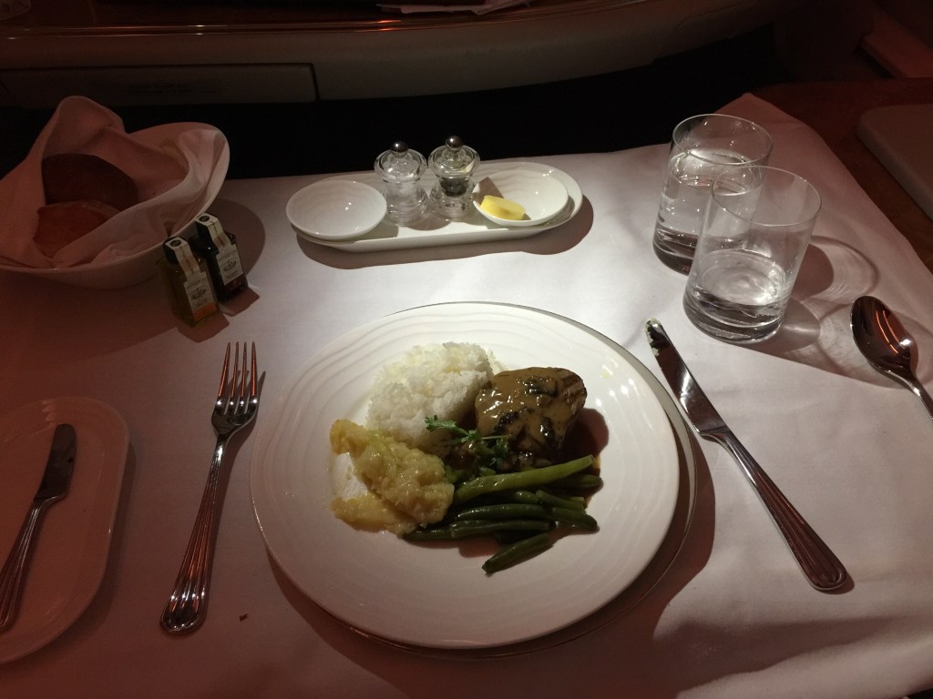 For dinner I skipped the canapés (I had eaten in the Qantas First Class Lounge earlier) and went for my first ever caviar experience. Definitely a sweet taste, the Russian vodka burned a bit on the way down. For my main meal I selected seared beef tenderloin with a side of streamed basmati rice. Dessert was red orange brioche puddling. All up very nice. The full menu is here. EK0405-MELSIN-F-32B_A380