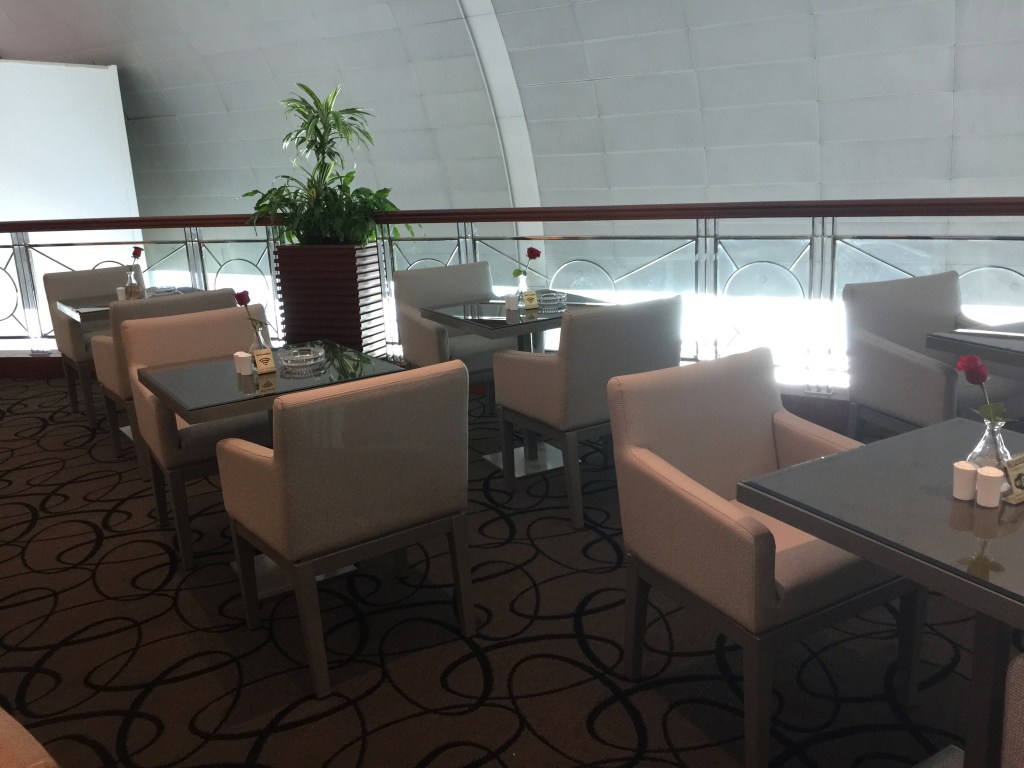 The lounge is spread across two levels. The top level includes a sleeping area, a small dinning area, and smoking seats while the ground level has the main dinning area, buffet options, computer area and non-smoking seats.