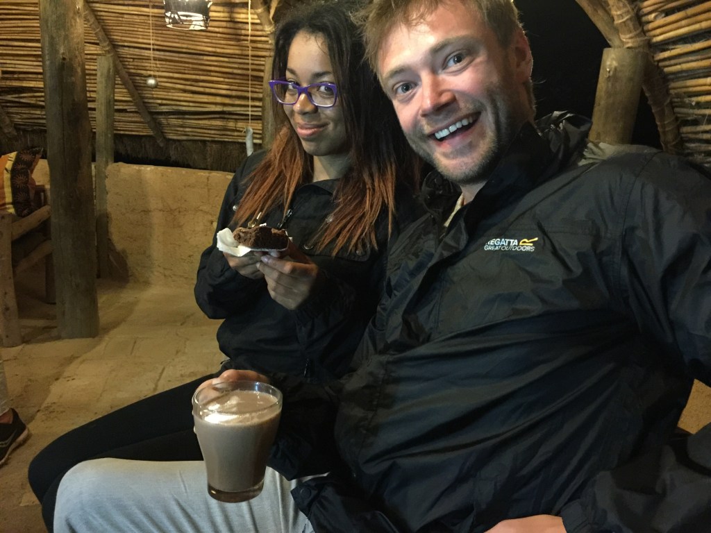 We didn’t arrive into camp until after sunset at around 7.15 pm and the campsite was very damp from the rain. I ended up upgrading to a basic room in what was previously the stables with Tera. The campsite provided the group with a cooked meal instead of Duncan having to make something for us. After dinner most of us went to the reception / bar and enjoyed a brownie and hot chocolate, although I did not partake on this occasion.