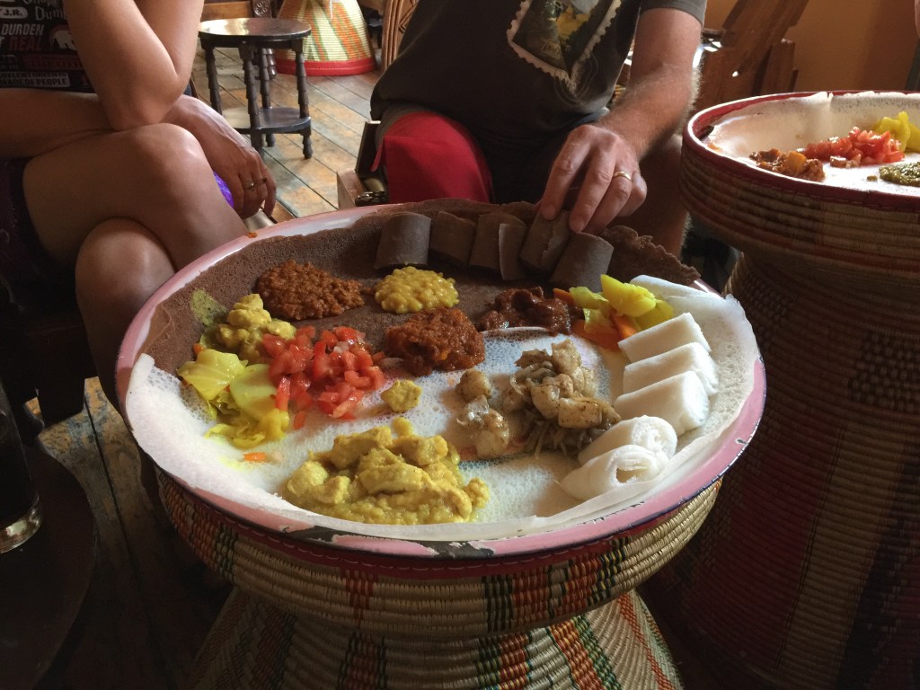 I managed to find everything I was looking for plus a bonus parting gift for Arran and Roz of a guinea fowl which had become a running joke during the long tour. For lunch Roz suggested we try Ethiopian cuisine so this was another first. I went for a mix combination of chicken and fish.