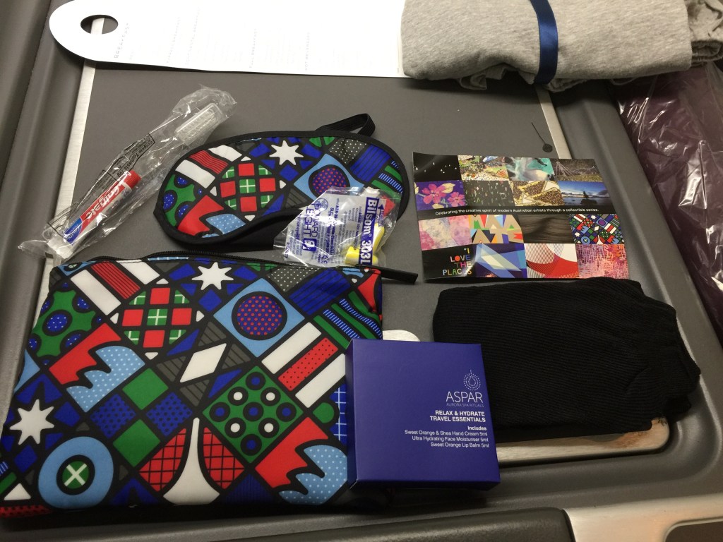 Amenity kit was handed out and included face mask, toothbrush and paste, ear plugs, soaks, a postcard, and the Aspar Travel Essentials pack (hand cream, face moisturiser, lip balm). Pyjamas were also offered, several passengers rushed to change before pushback but most waited for after takeoff including myself. Several passengers declined the pjs which I found surprising given this is an overnight flight.