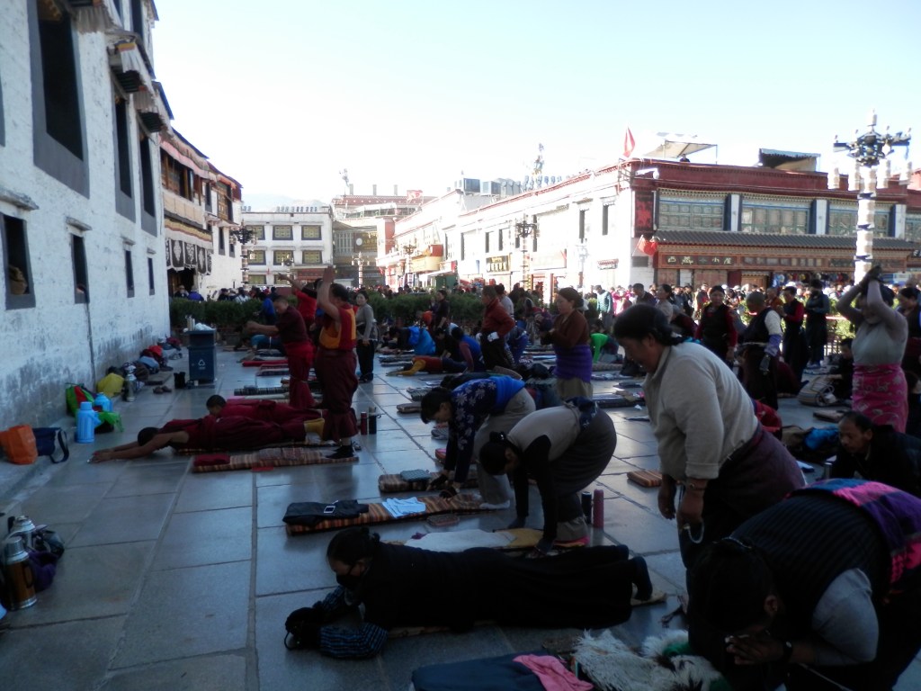 The main point of today was to visit Jokhang Temple. Out the front of this Buddhist temple was worshippers praying. The Jokhang Temple was founded during the reign of King Songtsen Gampo. According to tradition, the temple was built for the king’s two brides: Princess Wencheng of the Chinese Tang dynasty and Princess Bhrikuti of Nepal. The oldest part of the temple was built in 652.