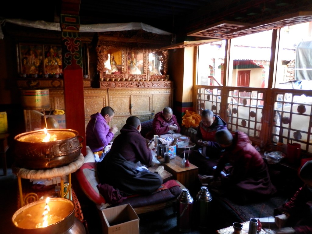 Tsamkhung Nunnery was built in the 15th century on a site that had been used for meditation by the 7th century Tibetan king Songtsen Gampo . The main attraction of the Nunnery was the praying nuns which we got to experience. We also got to watch some of the nuns make items to sell to the public to support their mission.