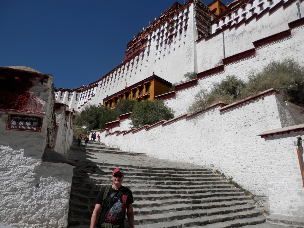 We then returned to our hotel and after a very early lunch (11.20 am) walked to Polata Palace which we saw last night light up. The 5th Dalai Lama started its construction in 1645. Thirteen stories of buildings—containing over 1,000 rooms, 10,000 shrines and about 200,000 statues. This was the seat of power of the Dalai Lama until going into exile in 1959. The number of visitors to the palace was restricted to 1,600 a day.