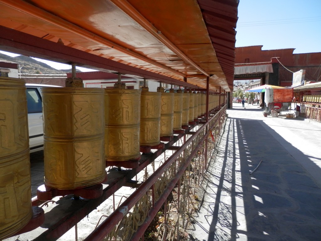 Getting to Pelkor Chode Monastery (meaning “Auspicious Wheel Joy Monastery” in Tibetan) was difficult with our driver trying several routes due to the road flooding but eventually he got us close enough to walk there. This monastery is run by three different Buddhist groups which is very unusual. You get to the monastery by a walkway lined with prayer wheels on either side.