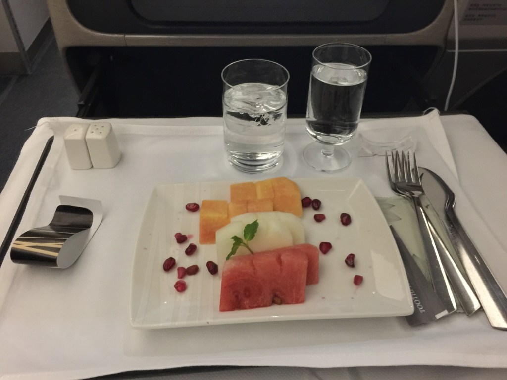 Between the Entree (fruit) and the main meal I was somehow forgotten and my tray taken away before getting the main meal. Chief Flight Attendant apologised several times for the mistake (I wasn’t complaining just pointed out I was waiting for main meal).