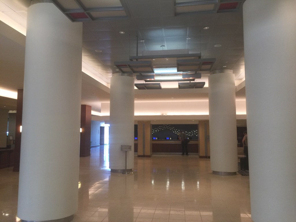 The Hyatt Regency DFW is a very good airport hotel, the room was nice and the bed comfortable, that price was fair for last minute booking ($203 AUD), they had flight departure boards you could monitor (just like they have at the airport itself) but best of all is the free airport shuttle left every 20 minutes. Not a bad last minute addition to the trip due to the delayed Sydney to Dallas flight.
