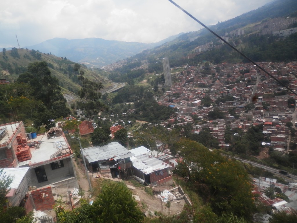 First up in the afternoon we went on the Metrocable (Cable Car) system. This cable car system commenced operation in 2004 and connections some of the poorest residents of Medellín who are nested in the mountains around the city to the opportunities that the city provides. The round trip ride gave us an opportunity to see some of the poorest parts of Medellín for a safe distance. Most of the housing had stable walls but not all.