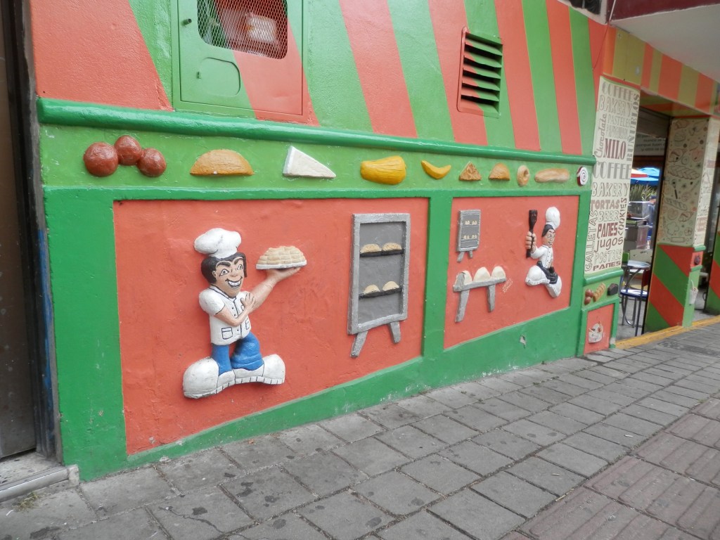 From here we moved onto Guatapé which was the main reason I choose this option. When researching Colombia the first picture I saw was of zocalos which are fresco like panels attached to colourfully painted houses and businesses. No one is entirely sure when this started but most often told story is a local back in the 1920s wanted to make the dull town stand out more and for Easter created some zocalos of sheep (important in Catholic stories) and from here it took off to today were the entire centre of town is bright colours with zocalo artwork.