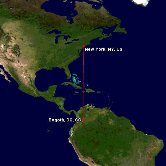 This flight was from the El Dorado International Airport (Bogotá) to John F Kennedy International Airport (New York).