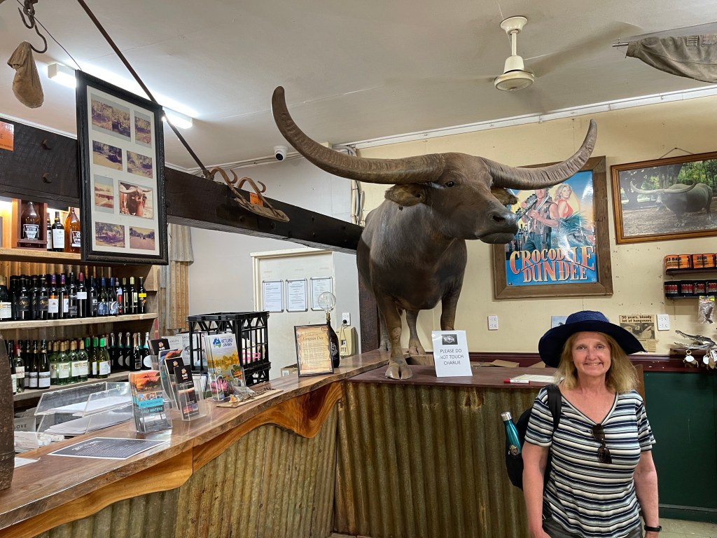 After our two hour cruise of first and second gorge we returned to our tour bus and headed out of Katherine towards Darwin. We stopped at Adelaide River. At the Inn we saw Charlie the water buffalo from Crocodile Dundee movie who had been stuffed and maintained following his death in 2000 and he now overlooks the bar to ensure we all behave!