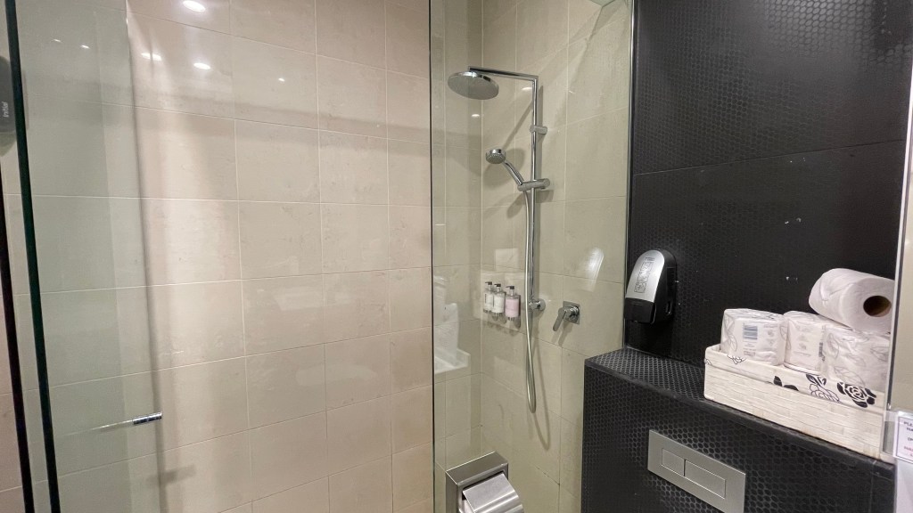 Two separate shower rooms are on offer, including one with baby change facilities. Towels are present within the room, and generic shampoo/conditioner/body wash pumps are also available.