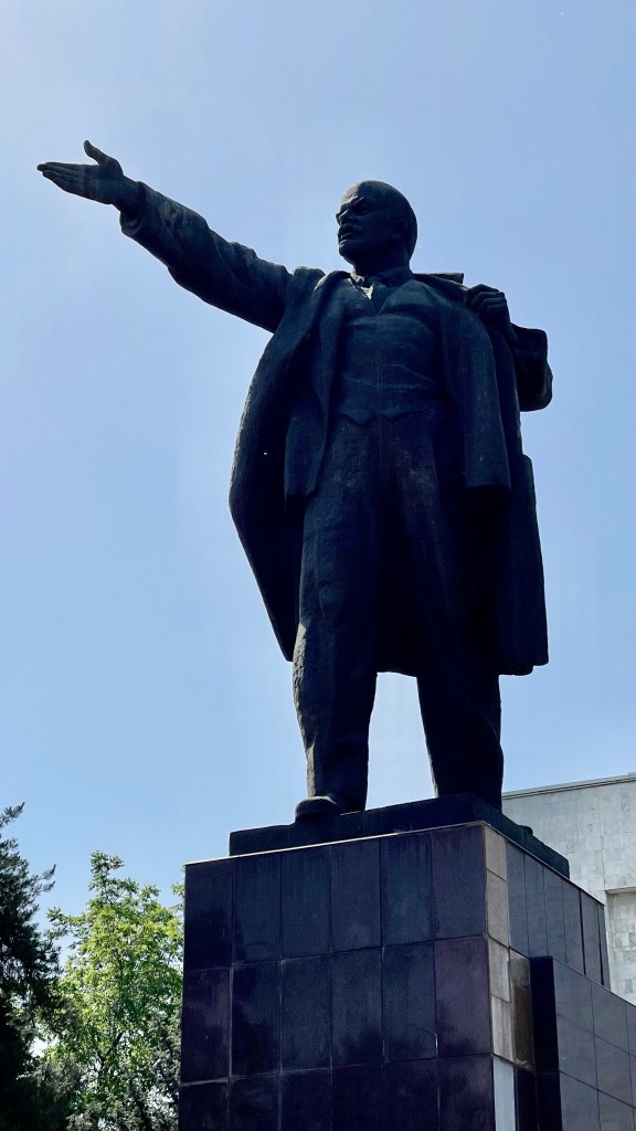 While walking about Bishkek we came across several important statues, including Kurmanjan Datka and important female leader who died in 1907 who lead her people in struggles and eventually peace with the Russian Empire. Very unusual for a female in that time to be such an important leader.
