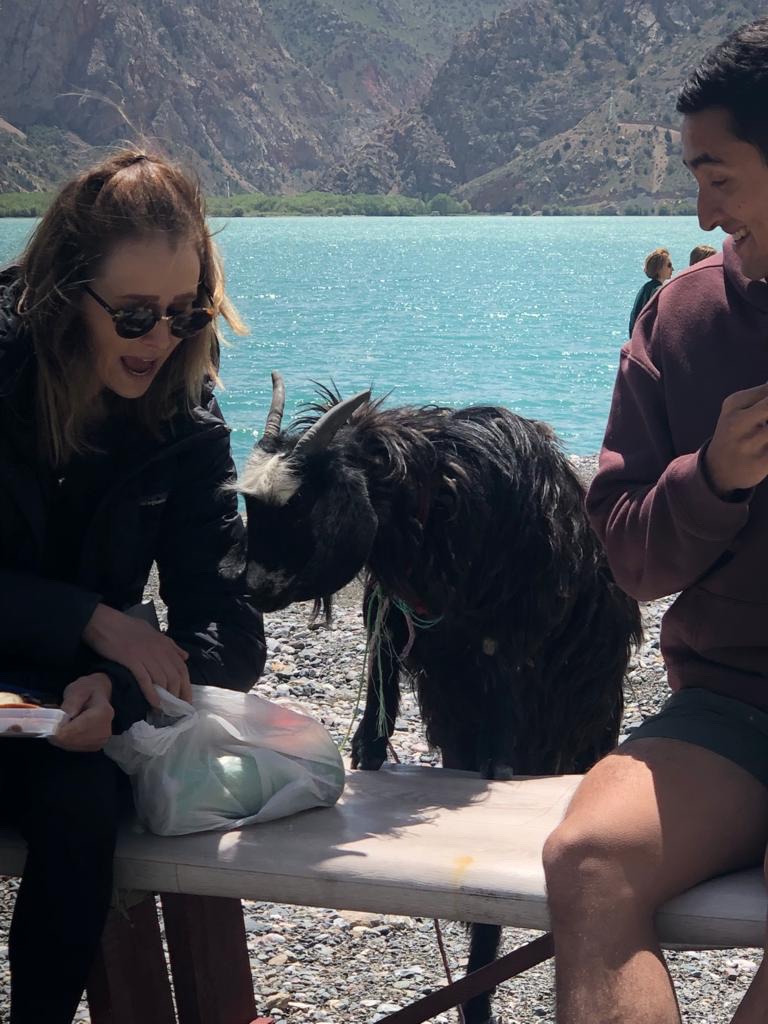 We then drove alone Alexander the Great’s lake arriving in Kuli Iskandarkul for a picnic around the lake. A local goat was very keen to joy us for lunch!