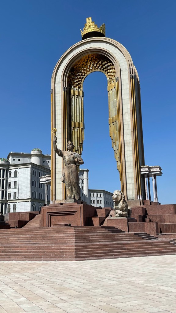 We then moved onto Rudaki Park which is a huge open area celebrating Tajikistan history and culture. On the edge of the park is the enormous Ismoili Somoni Statue and the Presidential Palace.