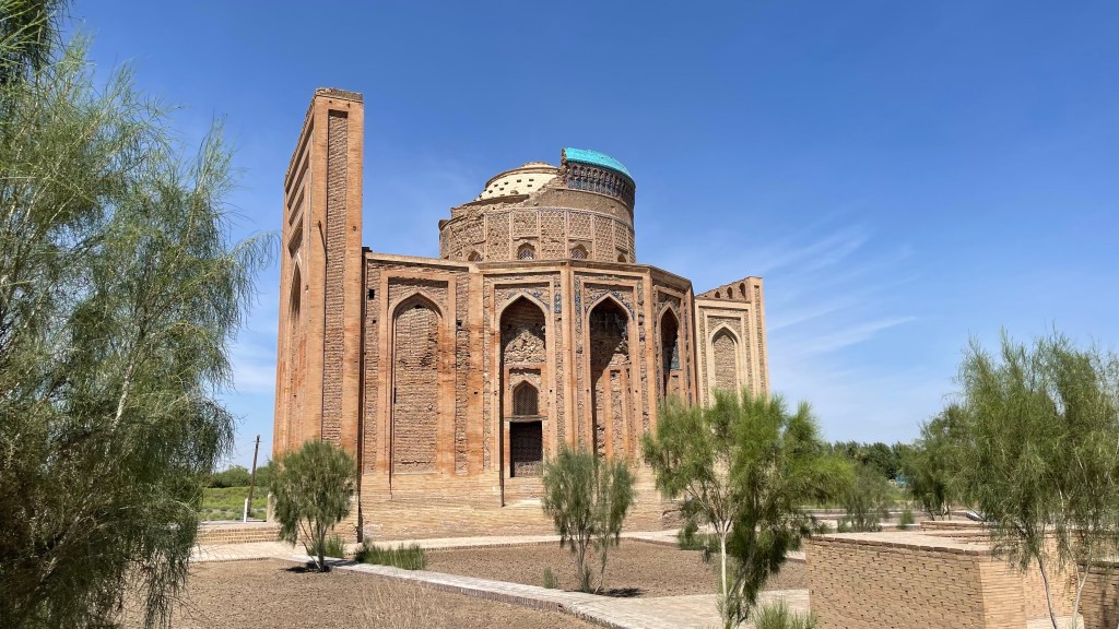 Kunya-Urgench was the capital of the Achaemenid Empire. The abandoned city contains a series of monuments in very good condition dating from the 11th to 16th centuries, this includes a mosque, the gates of a caravanserai, mausoleums and a stunning (but crooked), 60-m high minaret.