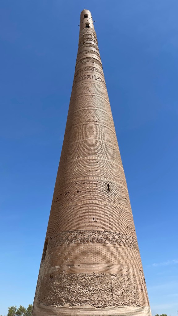 After a surprise hotel accidental wake call for everyone via an intercom announcement and an underwhelming breakfast, we were off on a 2 hour drive to UNCESO protected ancient abandoned city of Kunya-Urgench. This was the first chance to really see this country and some of it’s people.