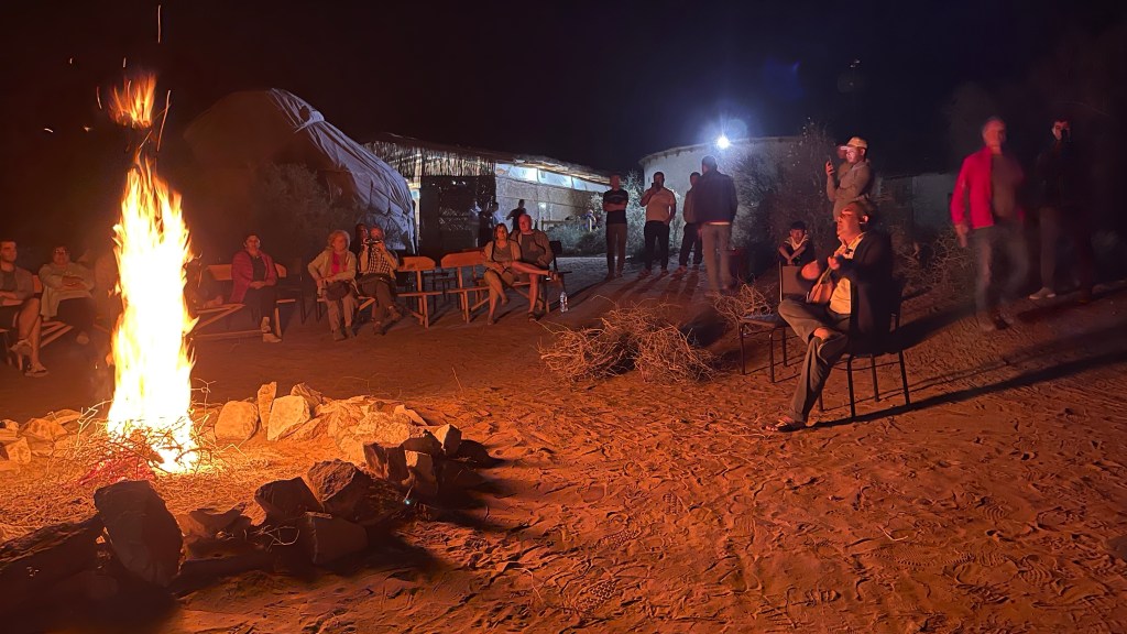 Nice basic yurt accommodation in a semi desert location. The Yurt’s had a light and a few power outlets. Breakfast and dinner were provided by local hosts which was fulling. Awesome evening singing and dancing to local music under the stars by a fire.