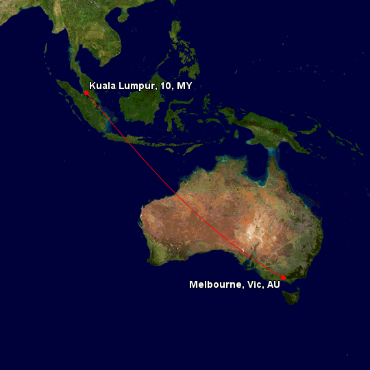 This flight was from Kuala Lumpur (Malaysia) International Airport to Tullamarine (Melbourne) International Airport.