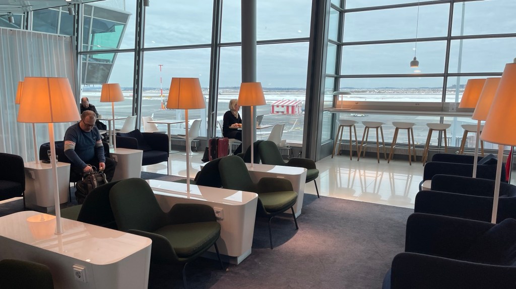 As a result, we accessed the Finnair Schengen Lounge (Helsinki). This lounge is located at Gate 22. This was a nice complex lounge which lots of drink options and some finger food. The lounge provided a good view of the tarmac and our airplane. Finnair has more impressive lounges for flights flying out of the European Schengen travel area that can only be accessed by passing Border Control.