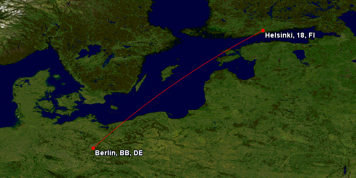 This flight was from Helsinki-Vantaa (Finland) Airport to Berlin Brandenburg (Germany) Airport Willy Brandt. This flight was between two countries in the European Schengen travel area so similar to domestic Australian flight.