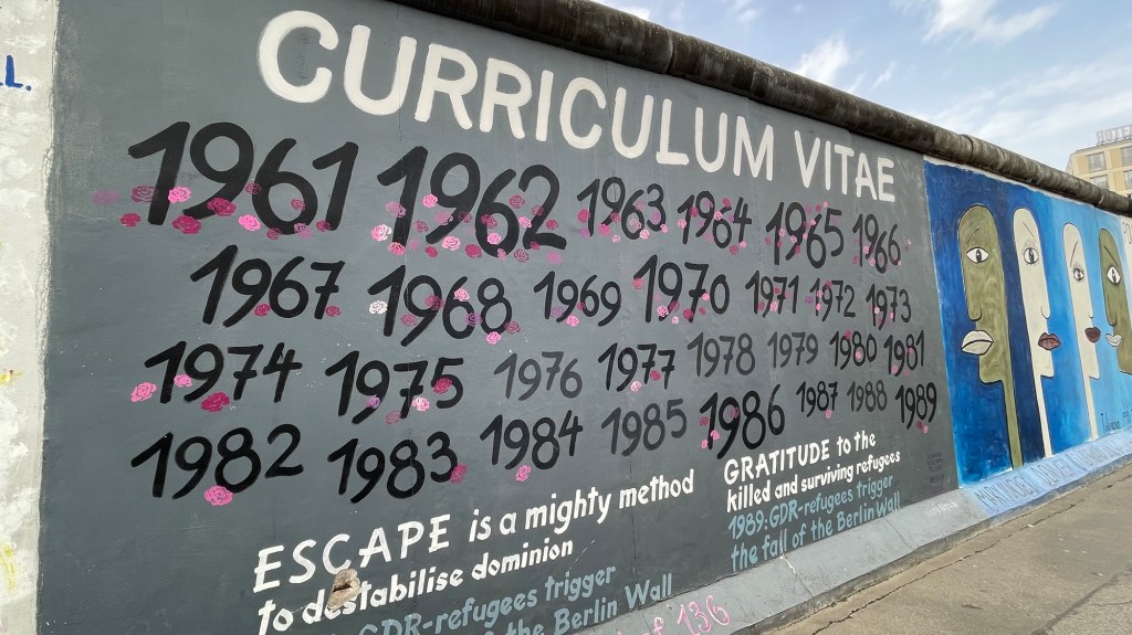 We saw a section that commemorating the deaths of those who tried to escape to the West. Christin provided a lot of personal insights was someone born in Easy Germany just before the fall of the Wall.