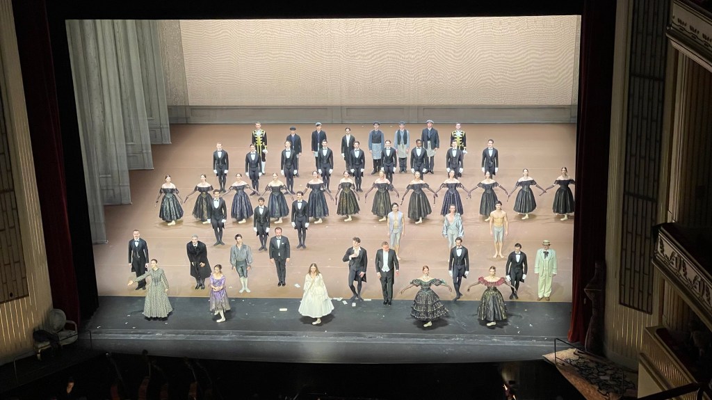 Tonight’s performance was for Die Kameliendame which is a ballet. It was written by Alexandre Dumas in 1848 as a semi-autobiographical novel. It is the story of a courtesan Marguerite Gauter and her suitor and later lover Armand Duval. It is a tragic story of missed opportunities, pain, and eventual death for Marguerite with the great regret of Armand.