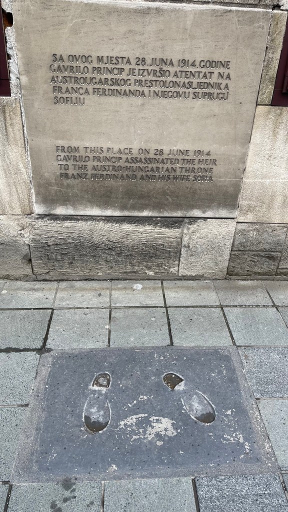 This assassination occurred just across from the Ottoman-era Latin bridge which runs over the river Miljacka.