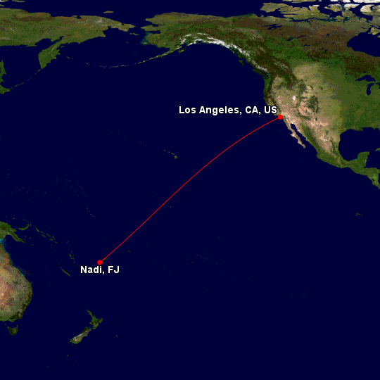 This flight was from Nadi International Airport (Nadi, Fiji) to Los Angeles International Airport (Los Angeles, USA).