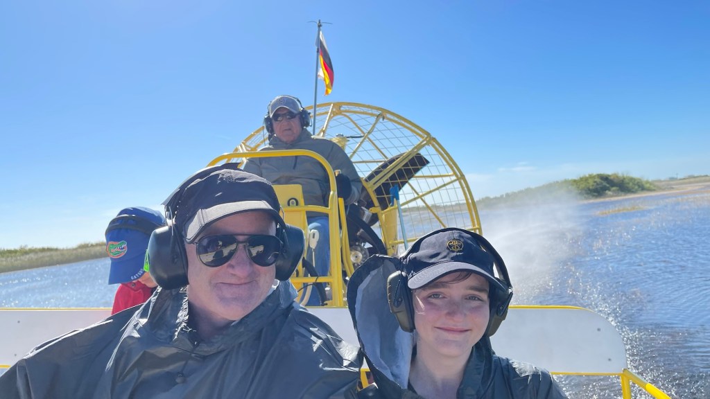 After a short break, we moved onto the airboat part of today’s tour. Richard, from the Miccosukee tribe, took us out on the water. Here we got to understand what the Everglades is with sallow water and a lot of wildlife. We got close to swimming alligators and watched birds fly and hunt.