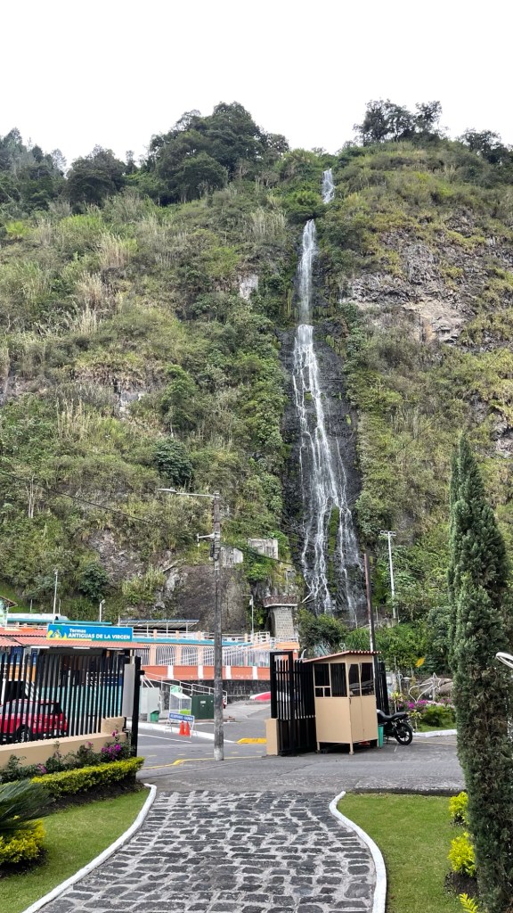 We had lunch inside the National Park before heading for Baños which took over 2 hours. Baños is a small town surrounded by tall mountains. We have a waterfall just outside our hotel.