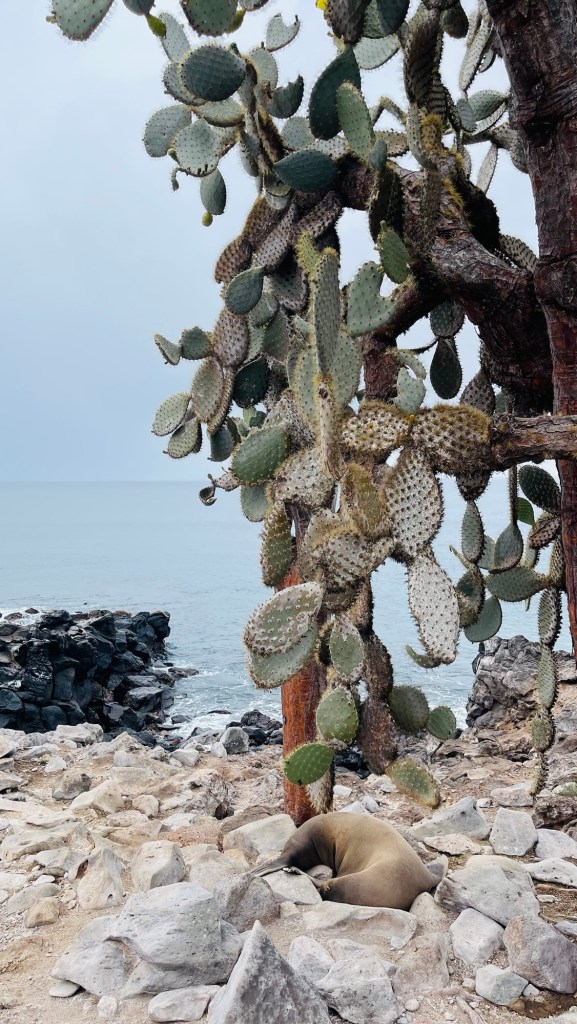 The highlight of this Island was the cactuses and how they have evolved. Omar explained how evolution is so different on the different islands. On Santa Fe, which lacks vegetation, the tortoises and lizards would eat the cactuses so they had to grow tall to survive.