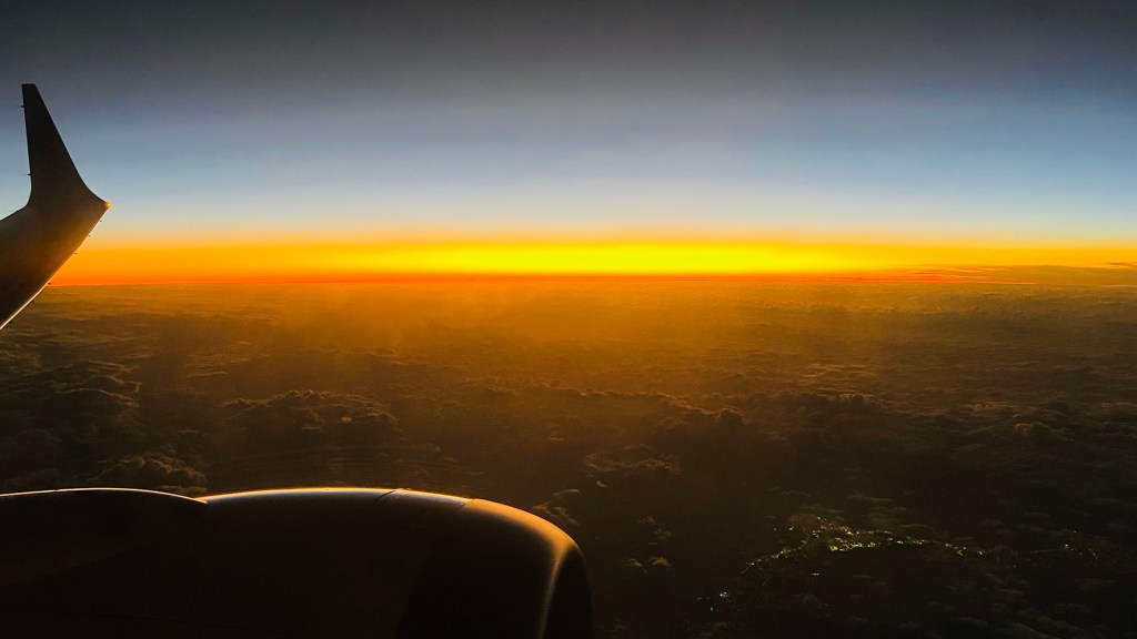 The flight had ‘gentle’ air turbulence for the first hour after take off. This delayed the food service and limited time people could use the toilets. I still found the flight comfortable and relaxing. I loved seeing the sunset near the end of the flight.