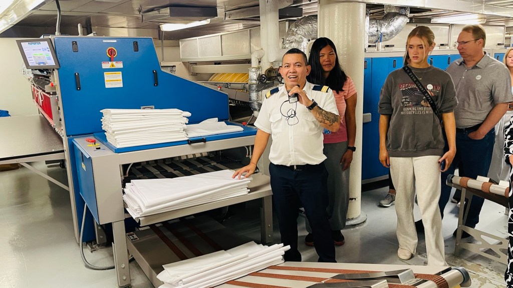 We then headed even deeper into the ship for the laundry area. A massive area given how much laundry is cleaned each day. Very efficient process.