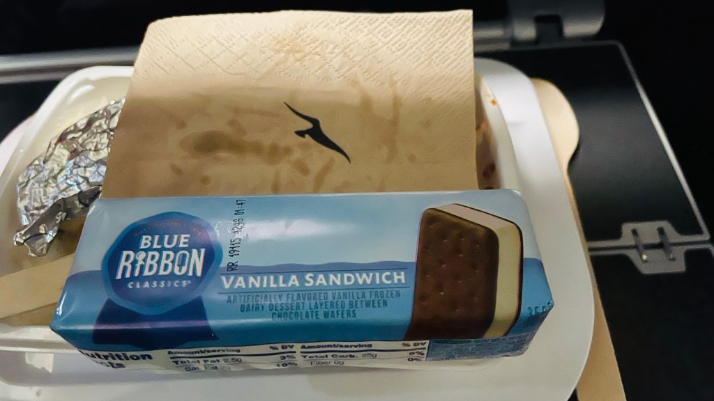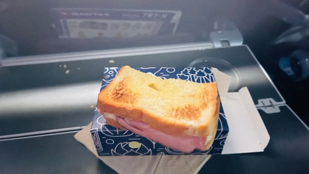 There was also a snack service provided at 07:08 Dallas time (11 hours into the flight) which was a very nice toasted ham and cheese sandwich.